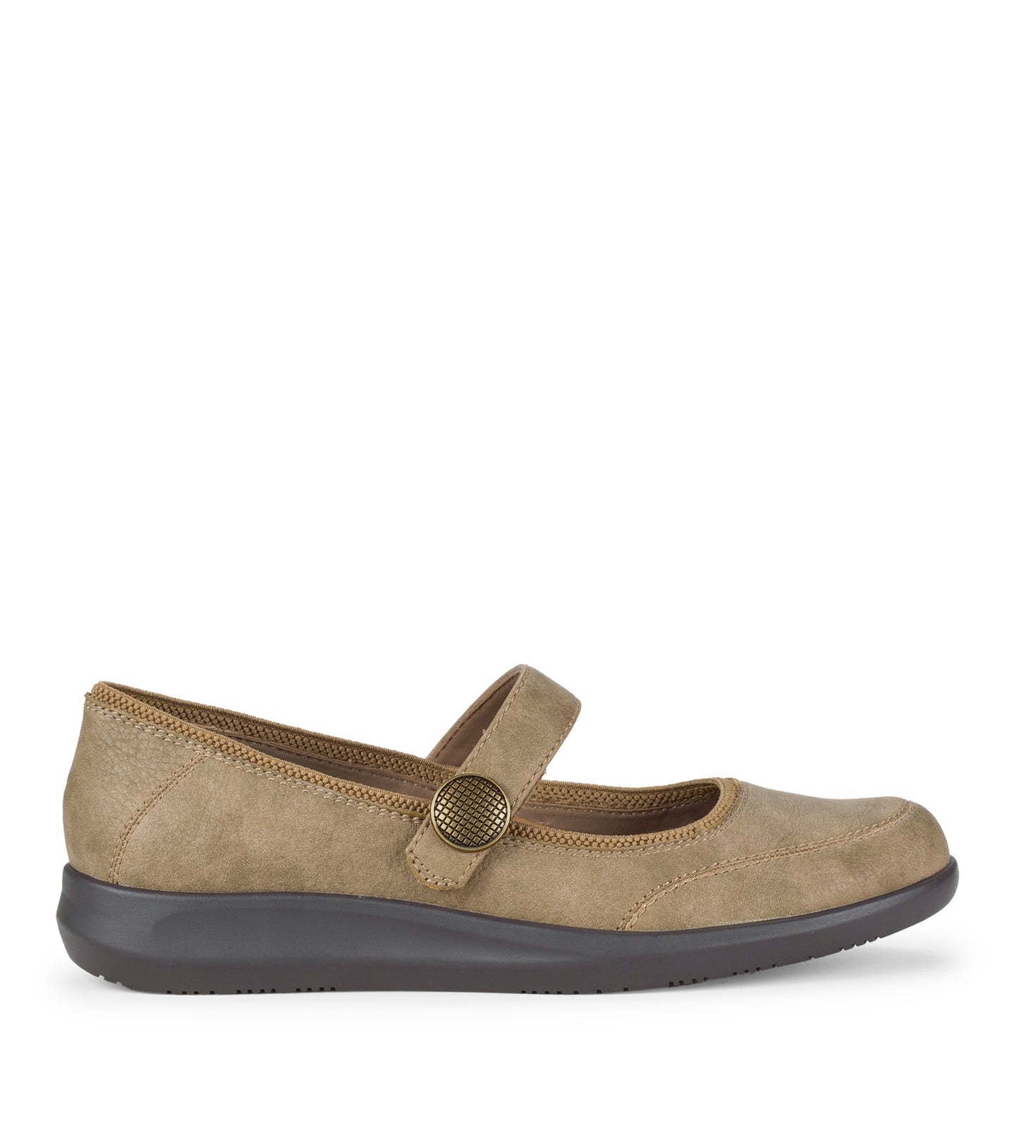 Meet the Baretraps® Joesie Mary Jane Wedge, a stylish and comfortable footwear option for your everyday adventures. Crafted with vegan materials, this shoe offers a sustainable and ethical choice without compromising on quality or comfort. The Float Form comfort insole provides superior cushioning and support, ensuring your feet stay happy and energized throughout the day. The hook and loop closure allows for easy on and off, while the round toe design offers a classic, versatile look. Elevating your casual style, the Baretraps® Joesie features a sleek metal ornament on the strap, adding a touch of refined elegance to your outfit. Whether you're running errands, exploring the city, or simply relaxing at home, these versatile wedges will keep you feeling confident and comfortable.