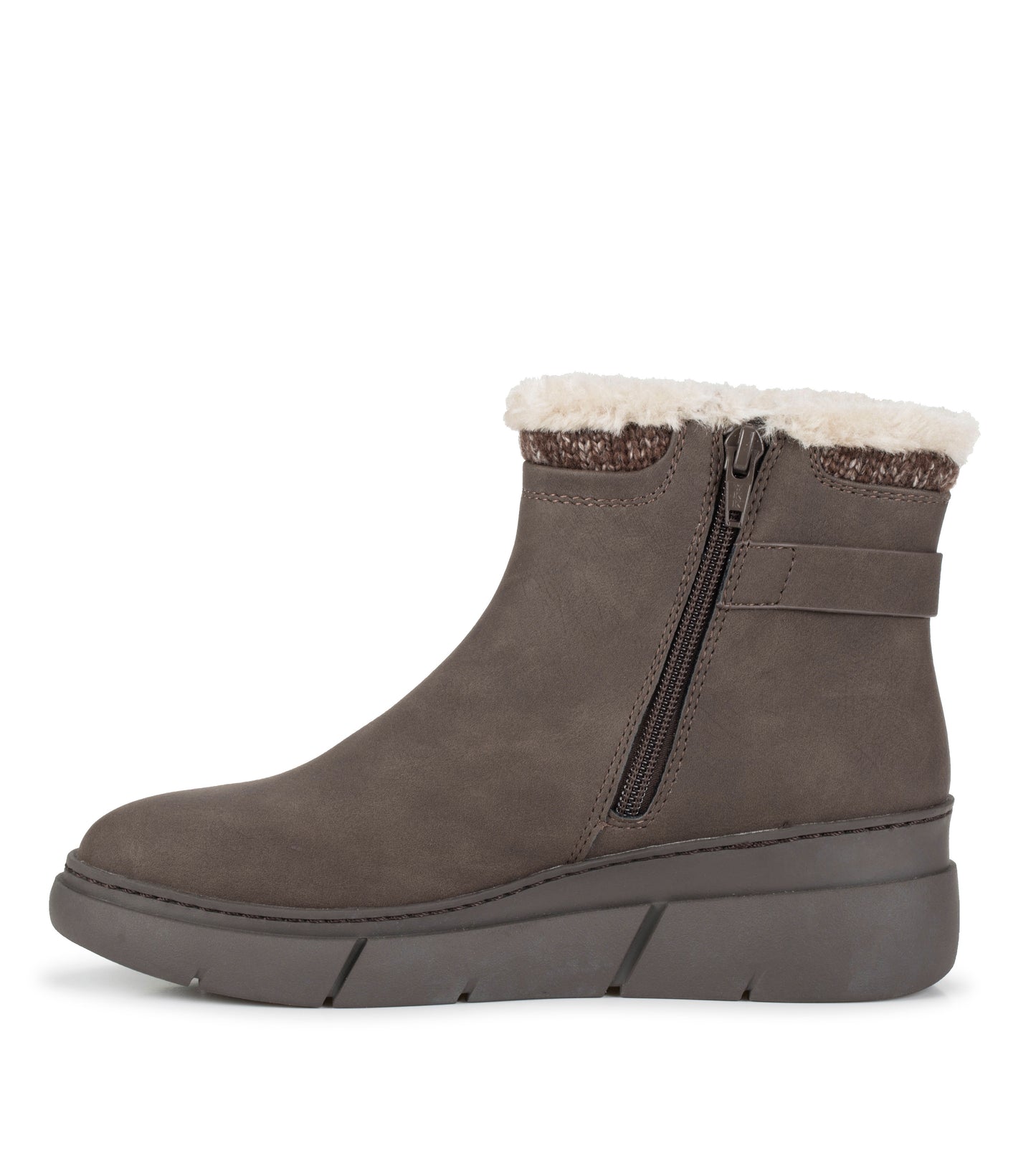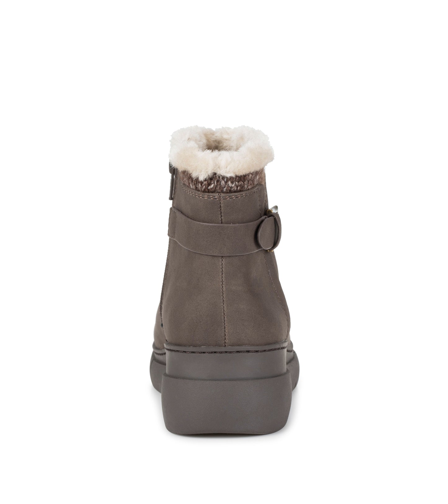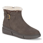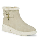 Meet the Baretraps® Lanney Wedge Bootie: proof that cozy can be stylish. Featuring a suede upper with buckle detailing and a faux fur lining, this bootie delivers effortless comfort and warmth. The cushioned insole and lightweight, slip-resistant outsole keep you steady and supported all day. With an easy inside zipper, the Lanney is perfect for chilly morning errands or pairing with skinny jeans and an oversized sweater for casual outings.