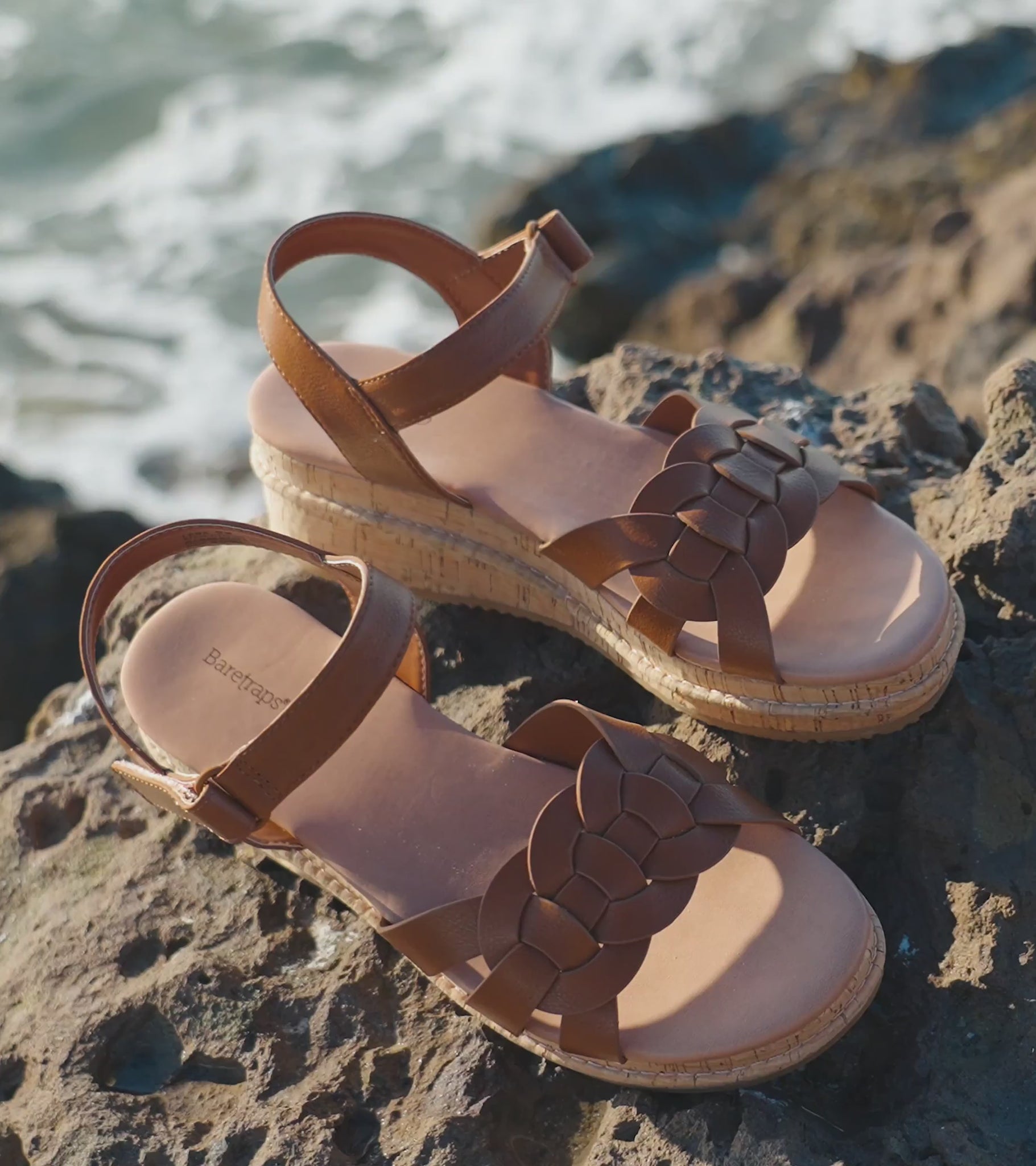 Take your summer look up a notch with the Baretraps Lena wedge sandal. Featuring a wrapped 1.25 in platform and an open toe design for a breezy touch with loads of comfort. The hook and loop closure ensures a secure fit. Crafted with care from man-made materials, with a cork midsole, these sandals are both fashionable and pair well with any spring or summer outfit.