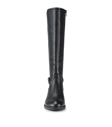 The Baretraps® Nena Wide Calf Riding Boot is a versatile and practical footwear option that combines style and functionality. Crafted with a synthetic upper, this boot offers durability and easy maintenance, making it a convenient choice for everyday wear. The inside zipper closure ensures a seamless and hassle-free entry and exit, allowing for a smooth transition from day to night activities. Designed with comfort in mind, the Nena features a cushioned insole providing superior support and shock absorption. The lightweight and flexible outsole offers excellent traction, ensuring steady footing on various terrains. Additionally, the microfiber footbed wicks away moisture, keeping your feet fresh and comfortable throughout the day. One of the standout features of this boot is the block heel, which combines a fashionable look with reliable stability. Whether you're navigating city streets or exploring the outdoors, the Baretraps® Nena Riding Boot offers a perfect blend of style and practicality.